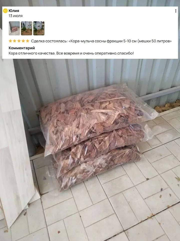 Интернет-магазин «Перегной» обеспечивает доставку коры сосны в Дрезну без предоплаты. Наша кора сосны является натуральным и экологически чистым продуктом, который бережно выращивается и производится в лесах России.